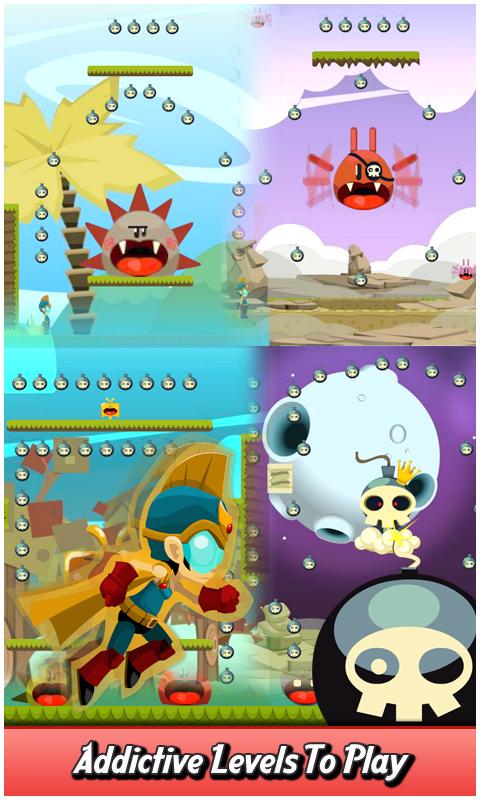Capt Boom FREE Arcade Game is infamous BomBomB king has captured superheroes from all across the universe and keeps them captive in his hideouts. Now it’s only you who can save them by collecting the king’s Bombs before they explode while avoiding being caught by the minions. In this adventure game to get the job done, Hero needs to move fast. Use the LEFT/RIGHT & UP arrow keys on the screen to move around and hold down the Up arrow key when you are in air to glide along the way. Beware of the monsters don’t get close to them It’s like extreme adventure games. Super hero’s needs to have some super power. Well in this arcade game you got one collect as much bombs as you can to fill your power bar. Once your Super power is activated you become immortal and your enemies can’t hurt you anymore. Game Features: • FREE TO PLAY! • A different grades of challenge for every level. • Mind bogglingly beautiful cute graphics and soundtrack! • Collect all the Bombs to Unlock New levels. • 6 Interactive Maps to play. • Extreme Adventure. • 24 competitive levels to clear. • 15 Achievements to Unlock. • Submit your score to be at the top. FOLLOW US * Like Us : https://www.facebook.com/StartAndroid * Follow Us : https://twitter.com/StartAndroid4U * Follow Us : https://plus.google.com/u/0/b/104636752712368339185/+Startandroidgames/posts